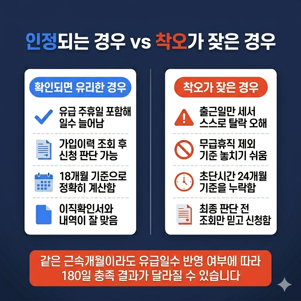 - 단순 근무개월 수만 보고 180일을 판단하면 착오가 생길 수 있습니다 ⚠️