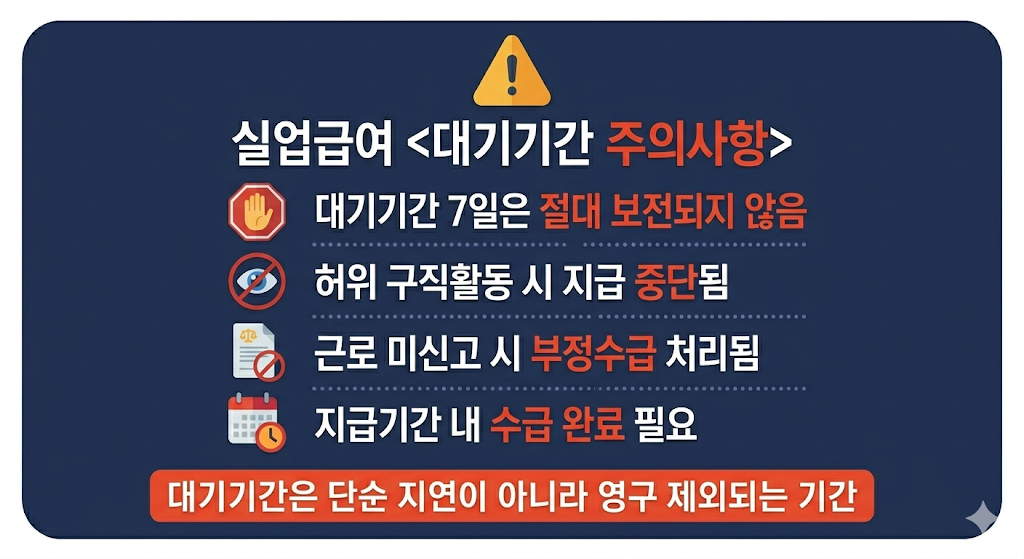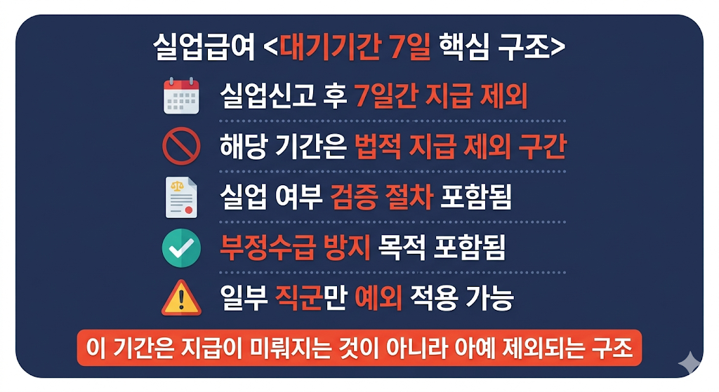 - 실업급여는 신청 후 7일 동안 지급되지 않는 대기기간 존재 📌