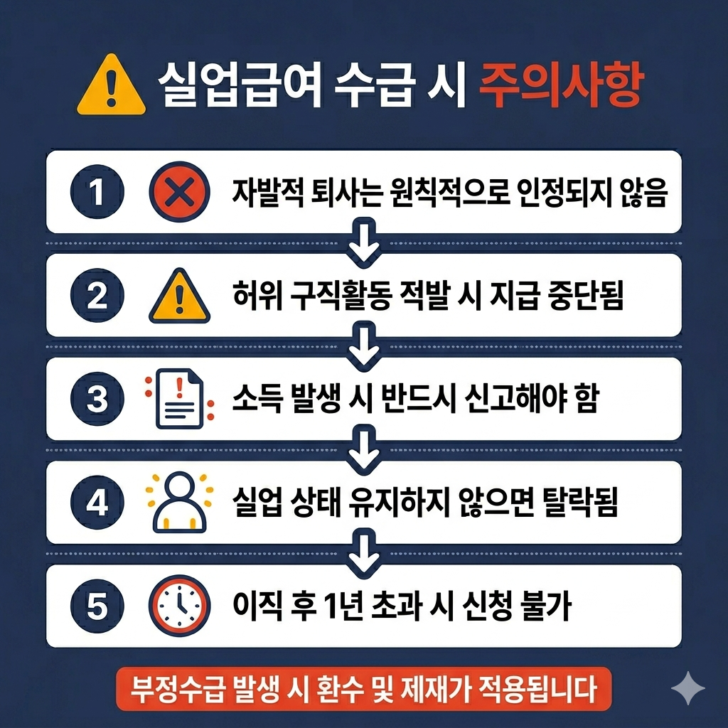 특히 자발적 퇴사나 조건 미충족으로 판단되면 수급 자체가 거절될 수 있습니다.