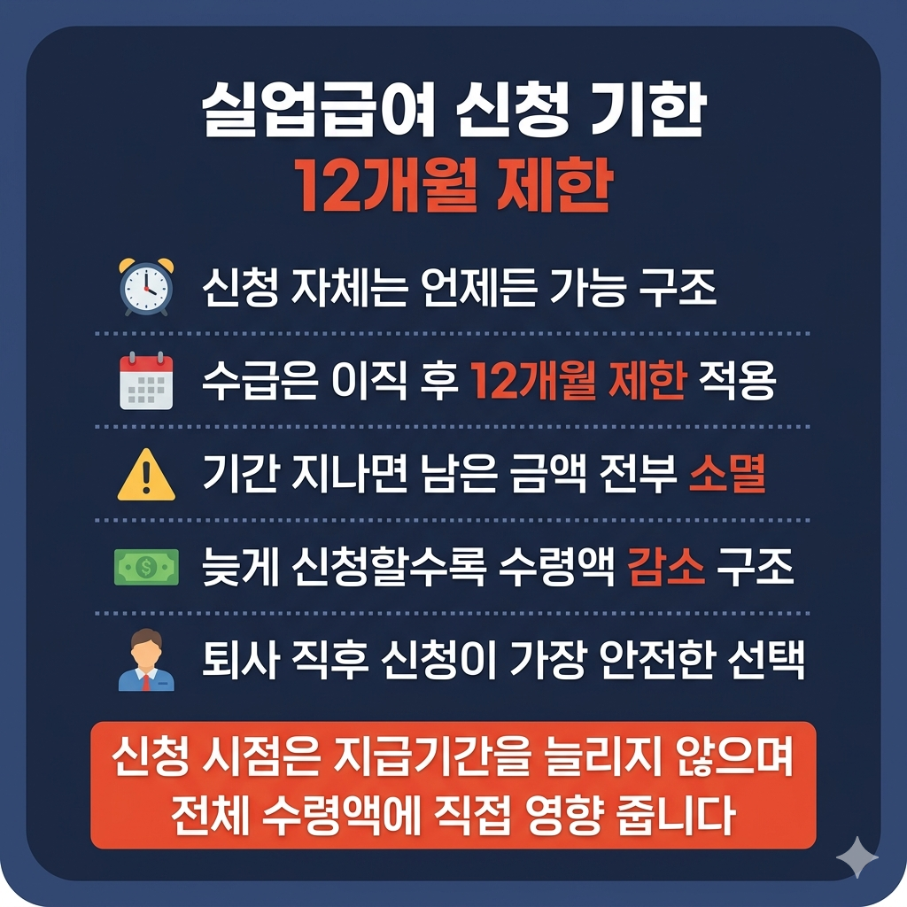 - 실업급여 신청 기한 12개월 이내 신청 ⏱️
