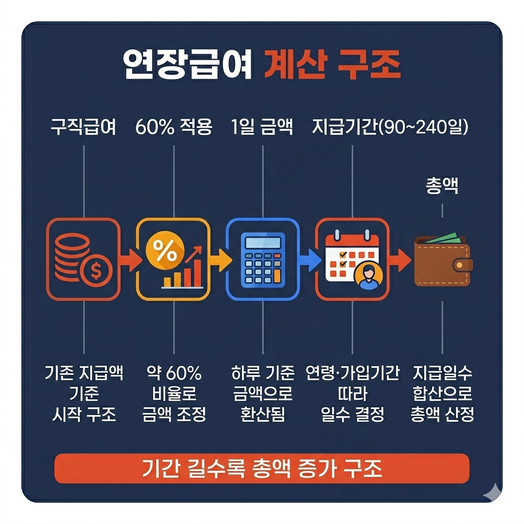 구직급여 지급액 × 약 60% 수준으로 일부 연장급여가 산정됩니다 💰