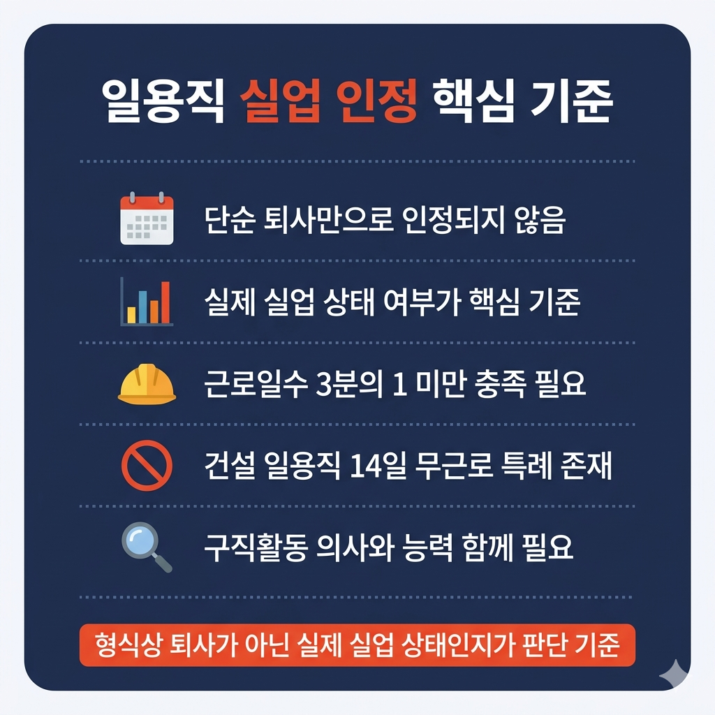 일용직은 일했다 쉬는 구조이기 때문에 진짜 실업 상태인지 판단이 핵심입니다.