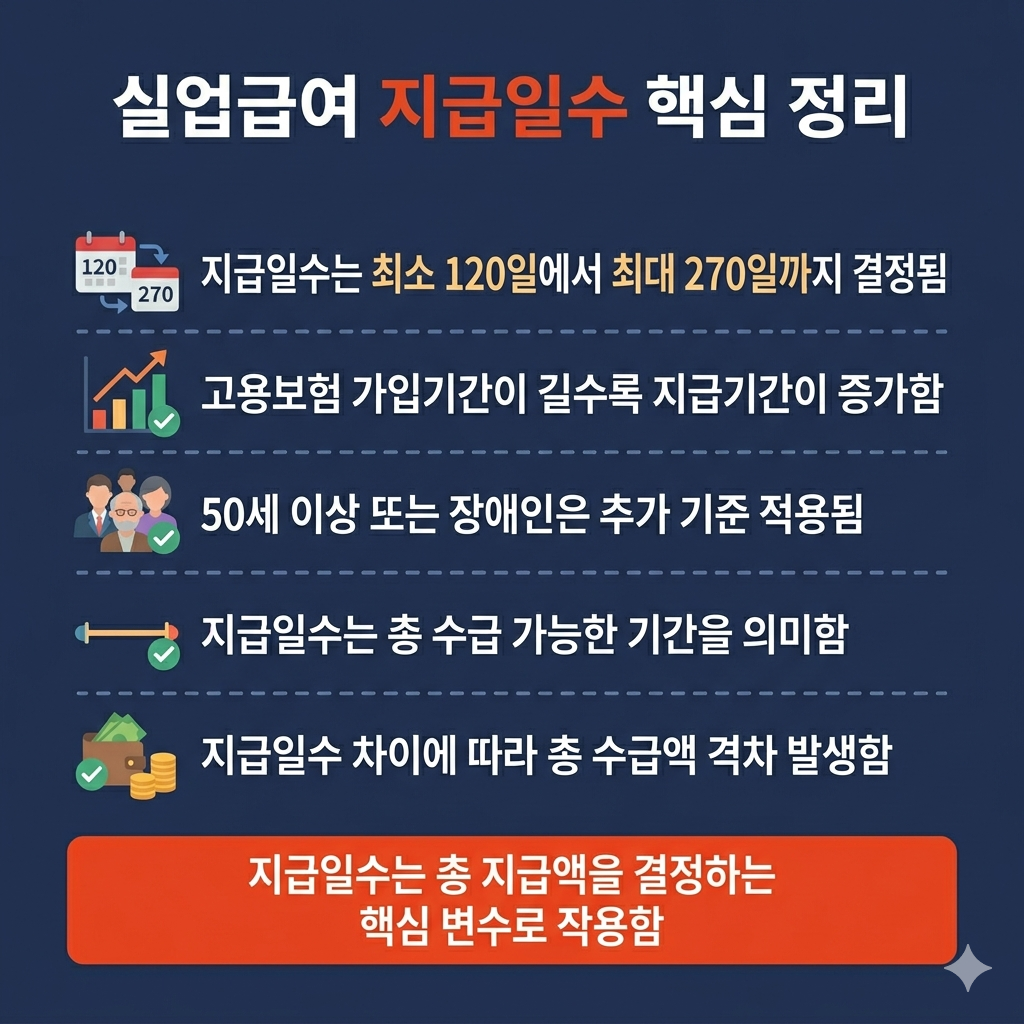 특히 가입기간과 나이에 따라 지급일수가 달라지기 때문에, 기준을 잘못 이해하면 지급기간 자체가 줄어드는 상황도 생깁니다.