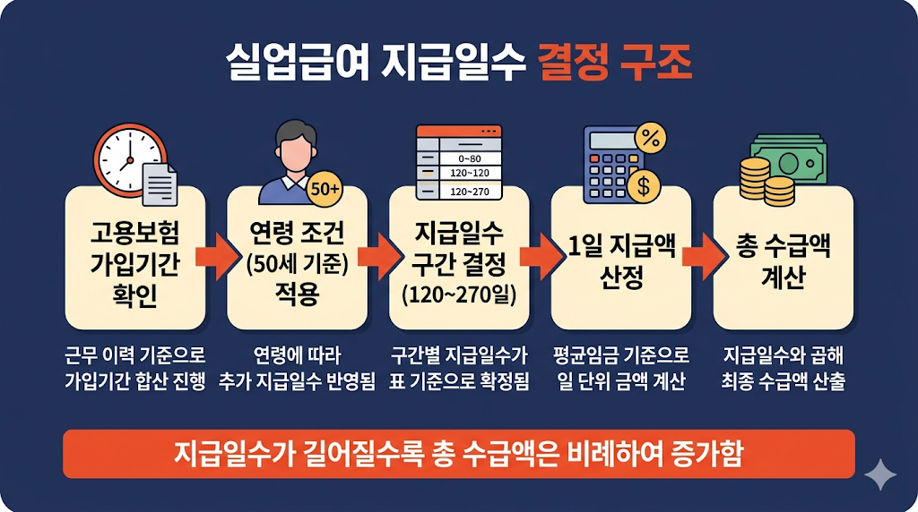 실업급여 지급일수는 다음 구조로 이해하면 쉽습니다 👇