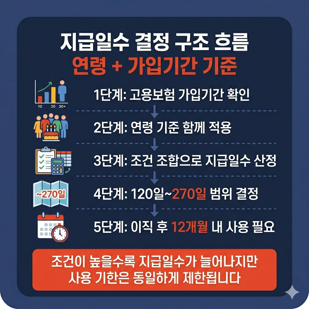 일반적으로 약 90일~240일 범위에서 결정되며, 연령 및 피보험기간에 따라 달라집니다
