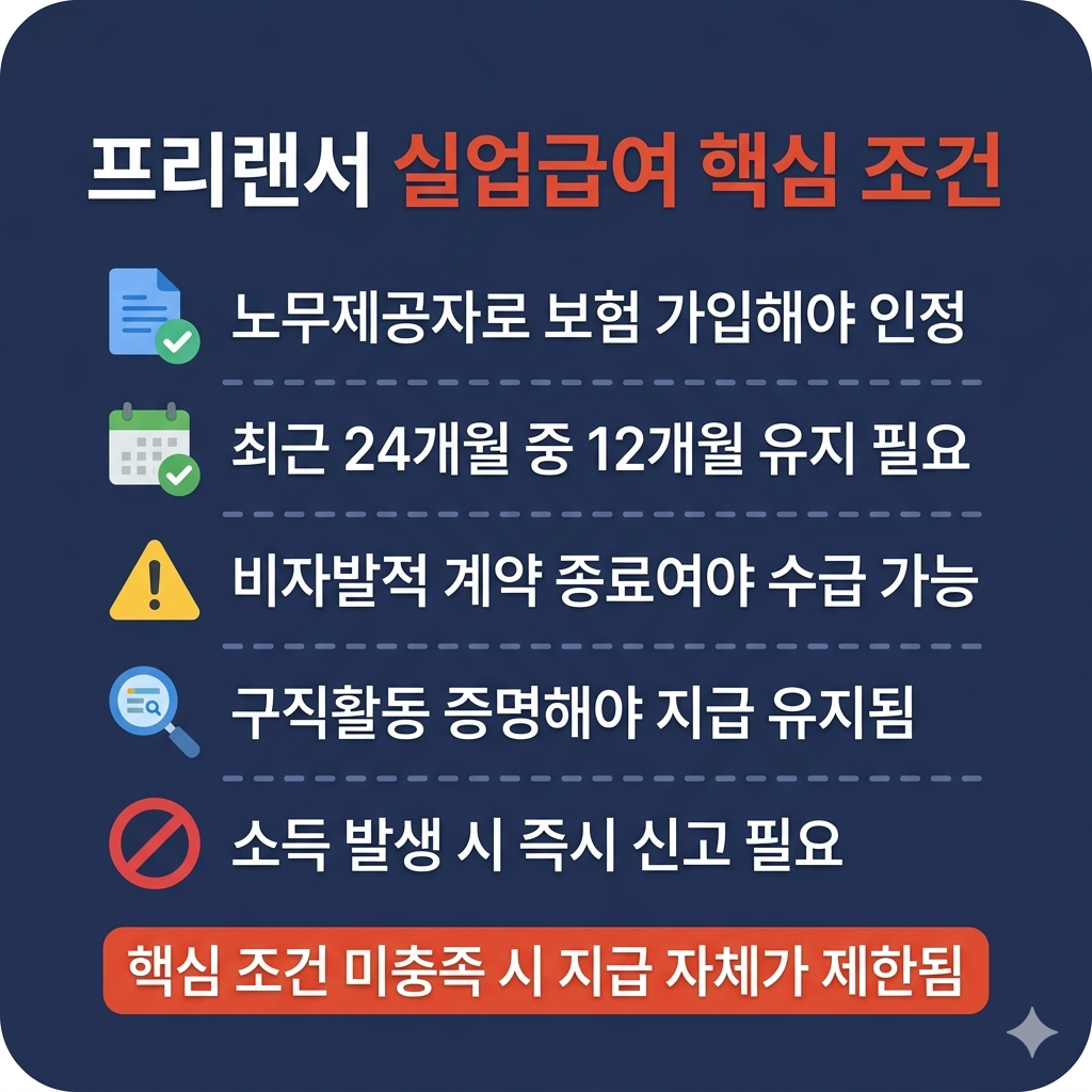 실업급여 프리랜서 조건의 핵심은 ‘노무제공자 인정 + 고용보험 가입’입니다.