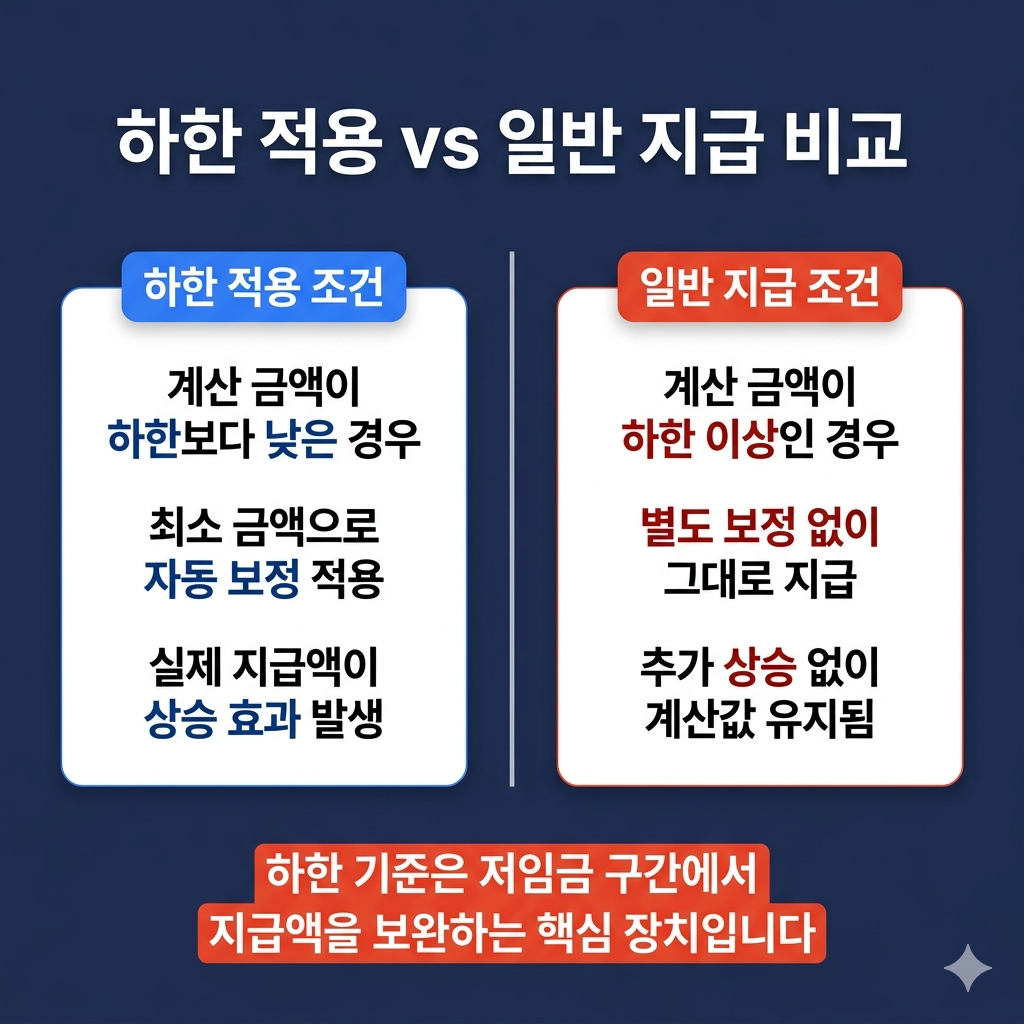 - 계산 금액이 하한보다 낮으면 실제 지급액은 올라갑니다 💰