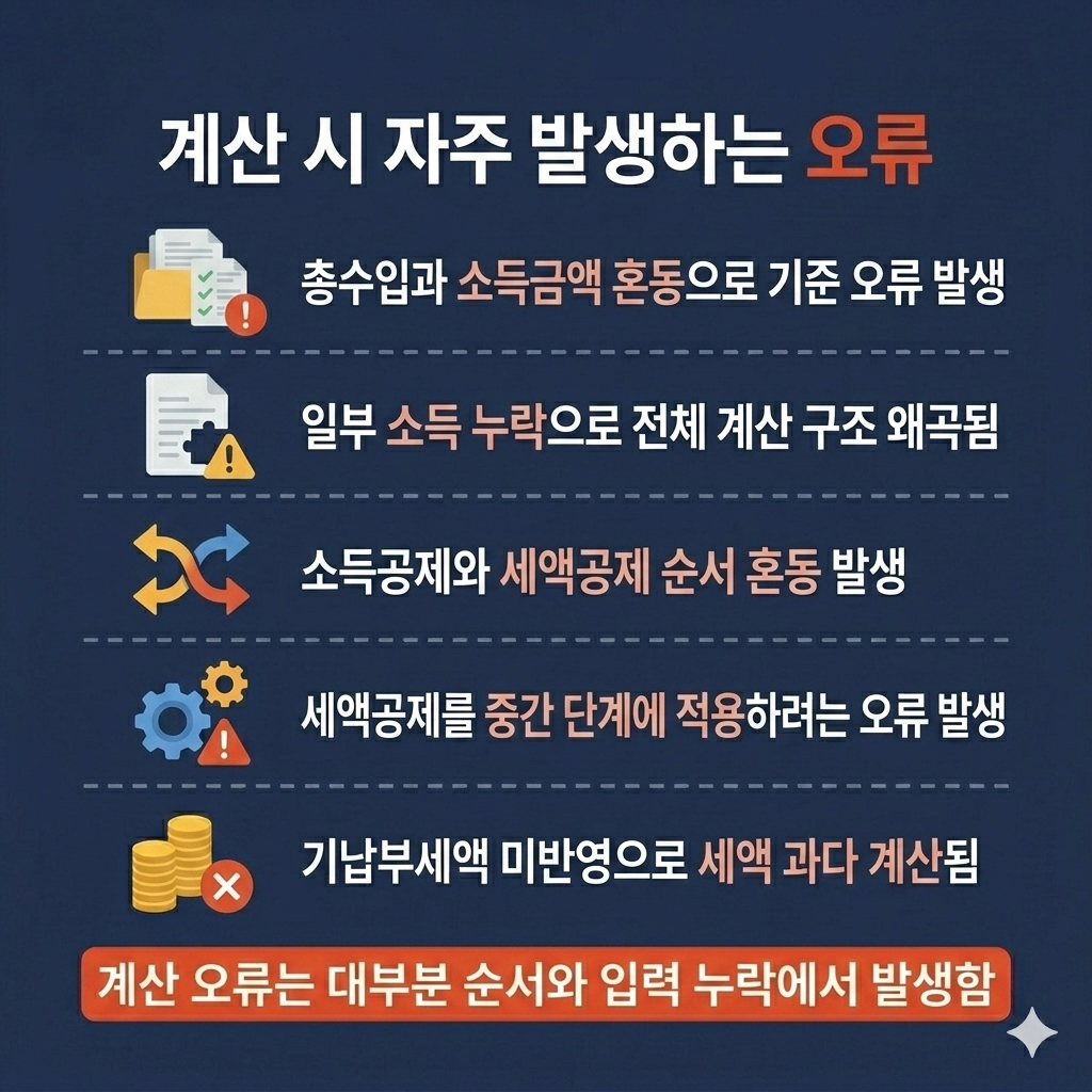 - 소득을 일부 누락하면 전체 세액 구조가 잘못 계산될 수 있습니다.