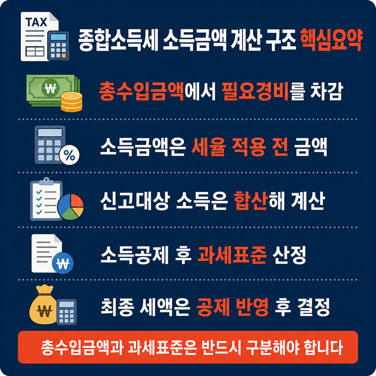 Q 종합소득세 소득금액 계산 구조의 핵심은 무엇인가요?