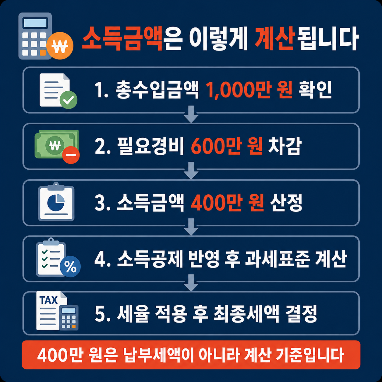 - 📌 소득금액은 연간 총수입금액에서 필요경비를 뺀 금액입니다.