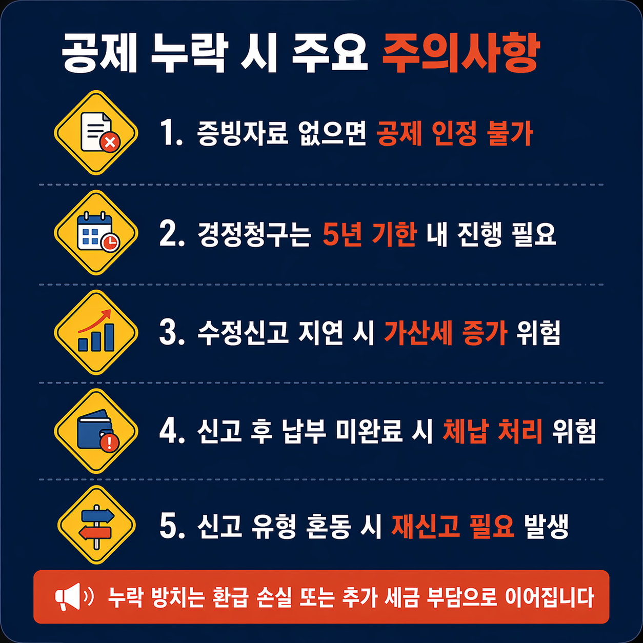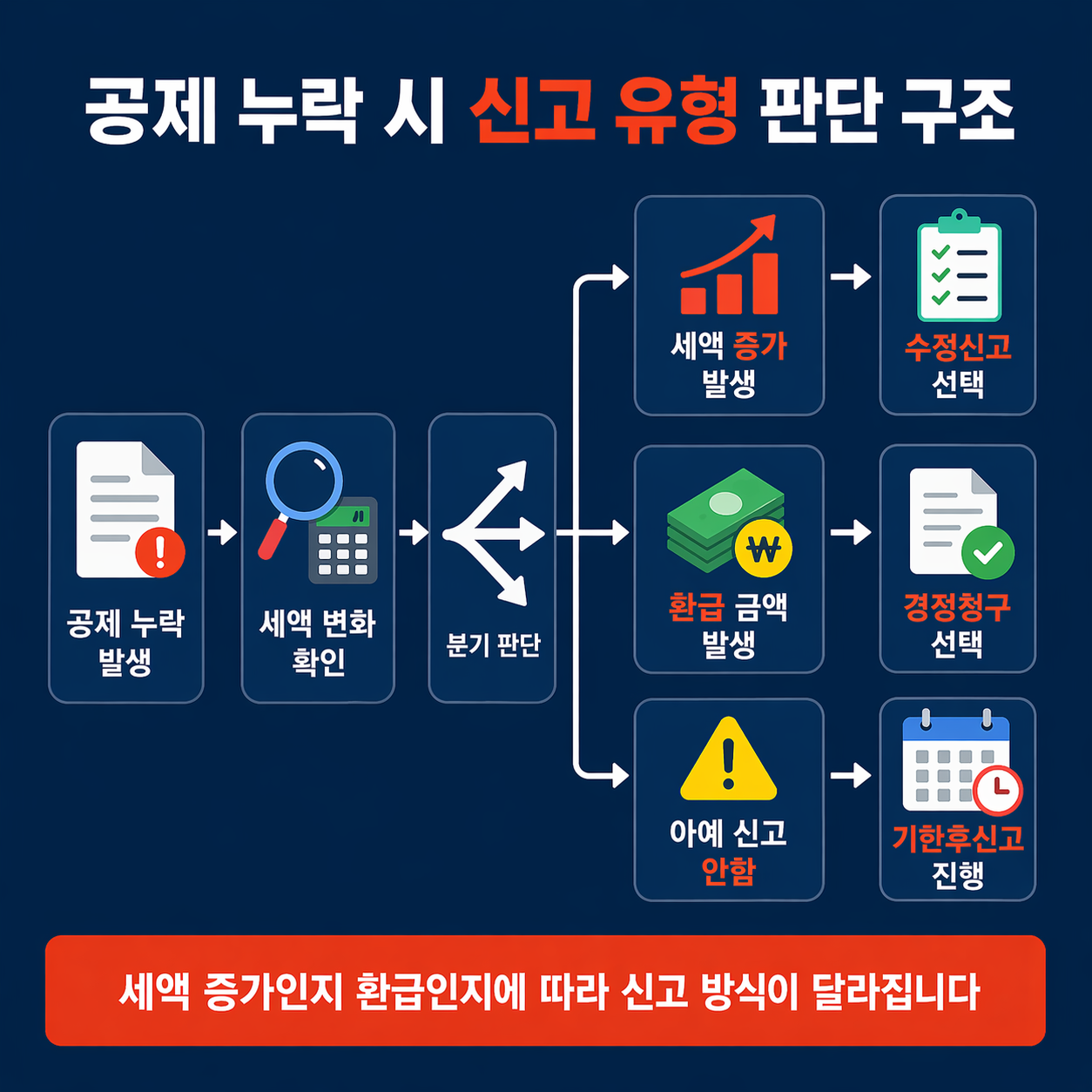 - 📌 소득 누락은 수정신고 또는 기한후신고로 반드시 보완합니다.