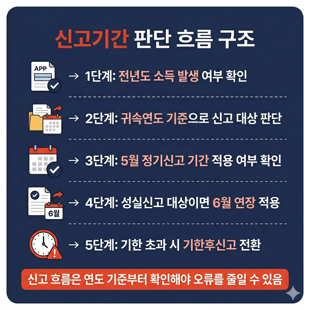 - 매년 5월 정기신고 기간을 기본 기준으로 먼저 확인해야 일정 차이를 줄일 수 있습니다.