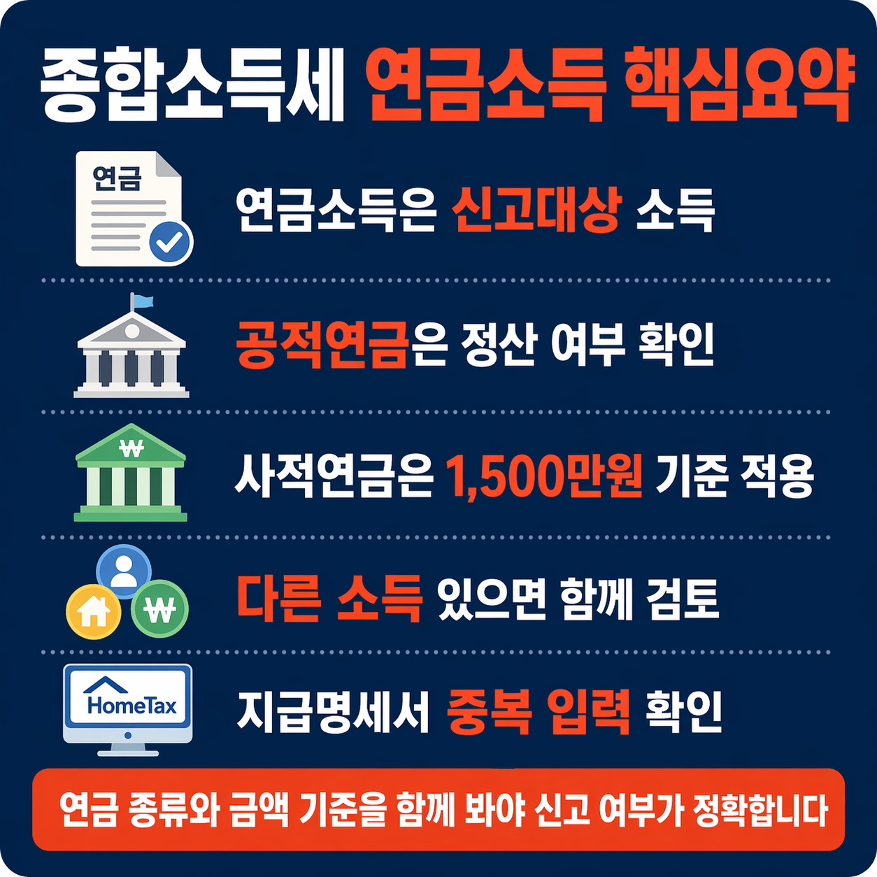 - 📌 연금소득은 종합소득세 신고대상 소득에 포함됩니다.