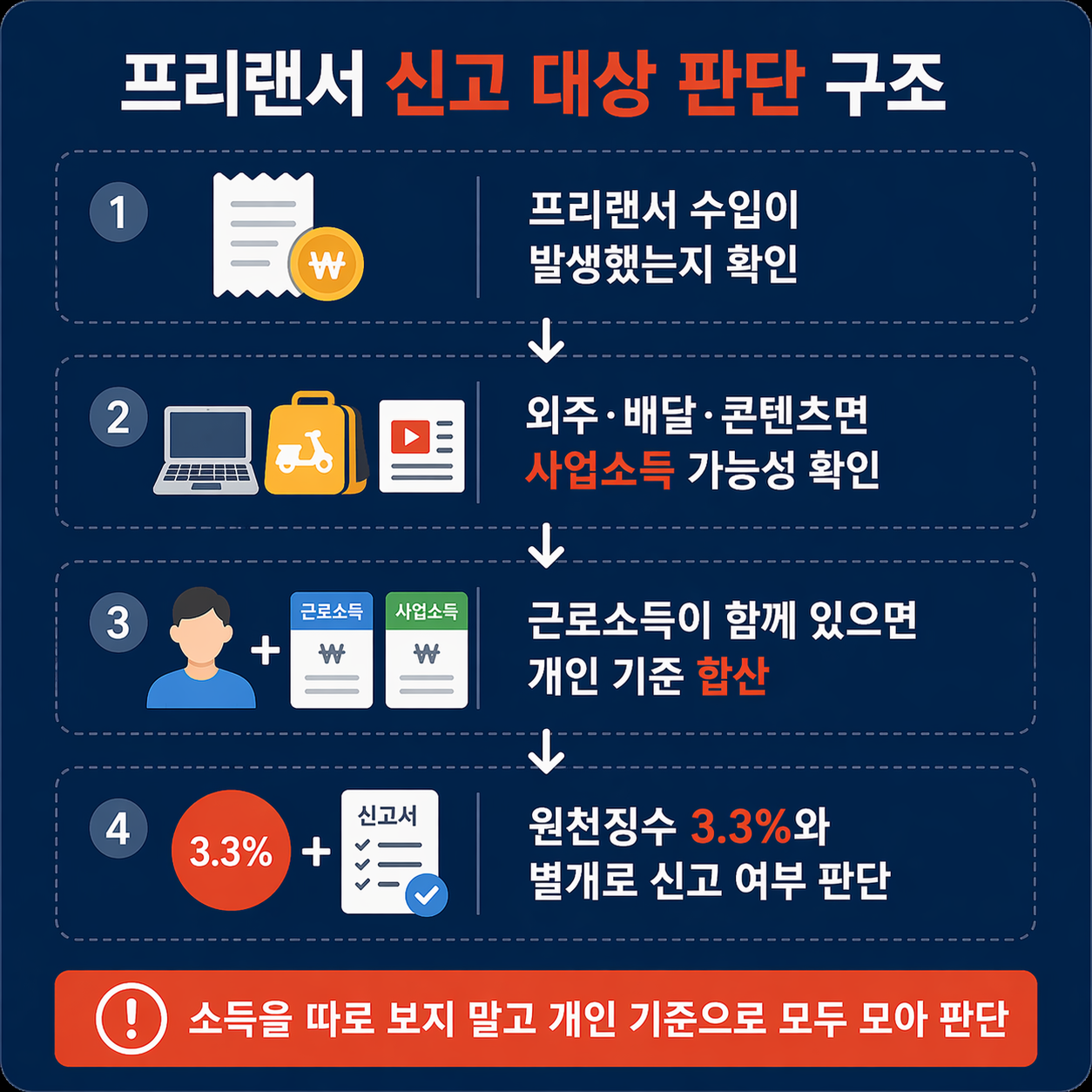 프리랜서 소득이 있다면 대부분 신고 대상이며 누락 시 추가 세금이 발생합니다.